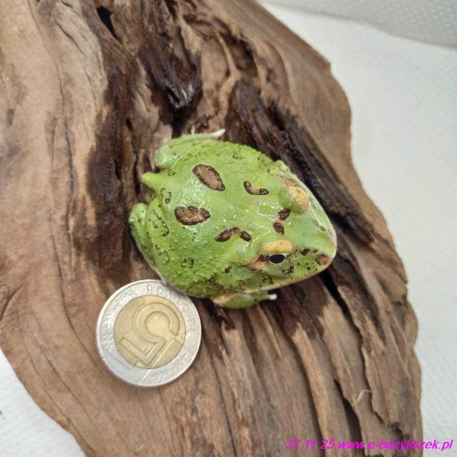 Bardzo ładna żaba, która dorasta do sporych rozmiarów. Podenerwowana potrafi "szczekać".